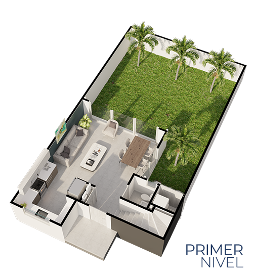 Nuestra casa de 130m² de construcción en Hacienda El Coyol prioriza la iluminación natural en ambas plantas, sin dejar de lado el aprovechamiento de los espacios. Se caracteriza por un amplio patio en forma de "L".